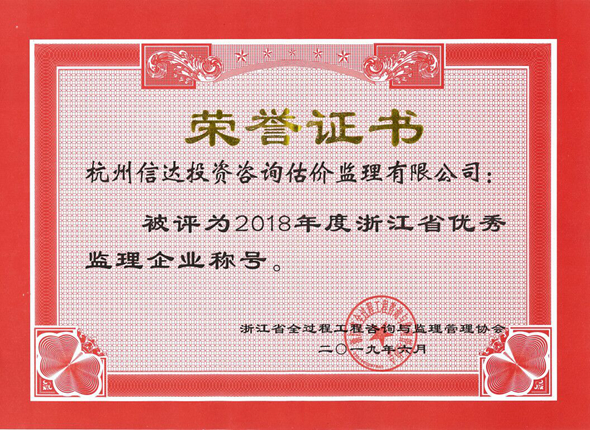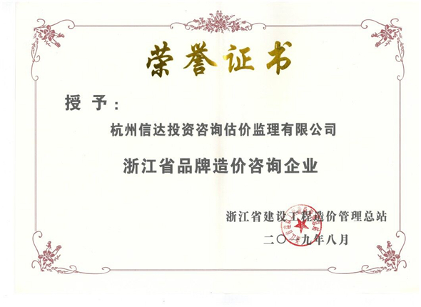浙江省建設工程造價管理協會“專業知識支撐單位”榮譽證書