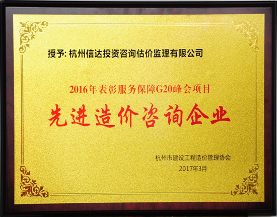 2016年表彰服務(wù)保障G20峰會項(xiàng)目先進(jìn)造價咨詢企業(yè)