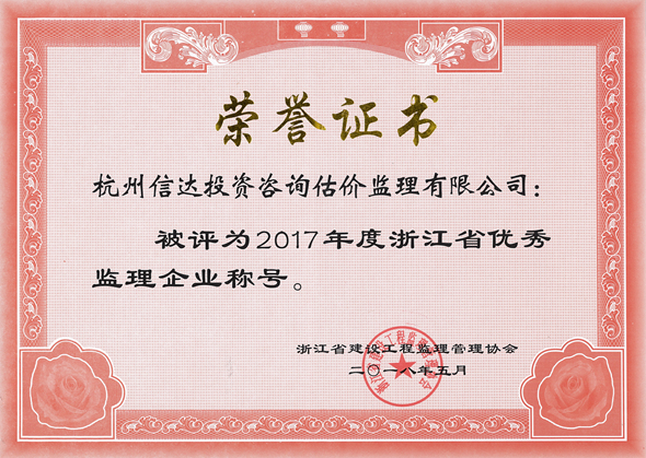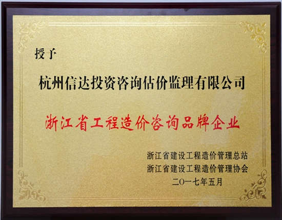 2017年5月被評為浙江省工程造價咨詢品牌企業(yè)