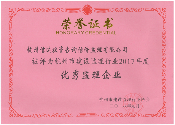 2017年度杭州市優(yōu)秀監(jiān)理企業(yè)