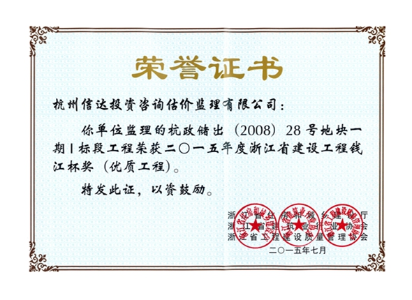 杭政儲出(2008)28號地塊一期I標(biāo)(2015年度錢江杯)